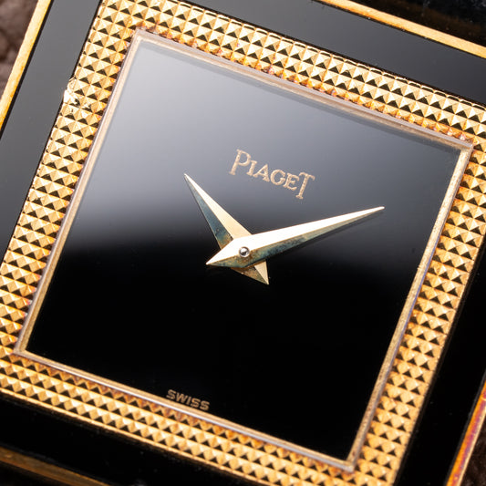 Piaget Square Onyx Clous de Paris 18k Yellow Gold Cal. 9P Ref. 9200 from 1970s