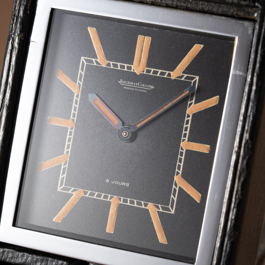 Jaeger LeCoultre Fabriqué en Suisse 8 Jours Travel Clock Black Dial 1940s