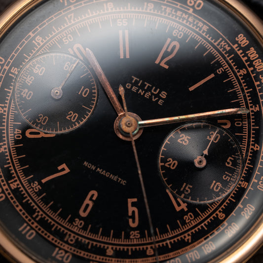 Titus Black Gilt Dial Jumbo Chronograph 18K Rosé Gold from the 1940s/50s