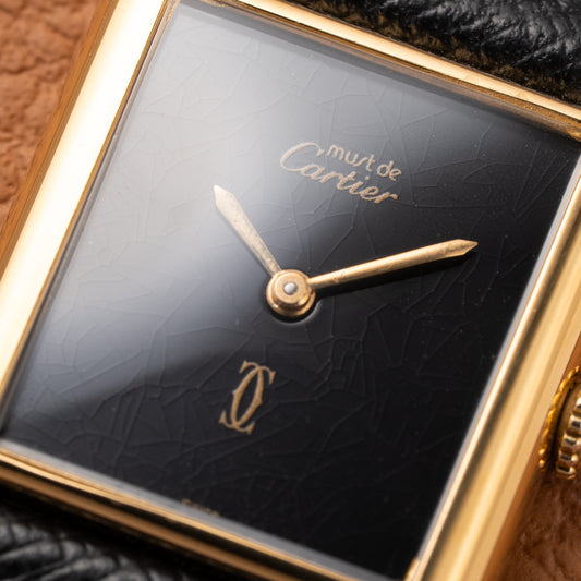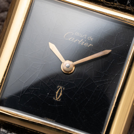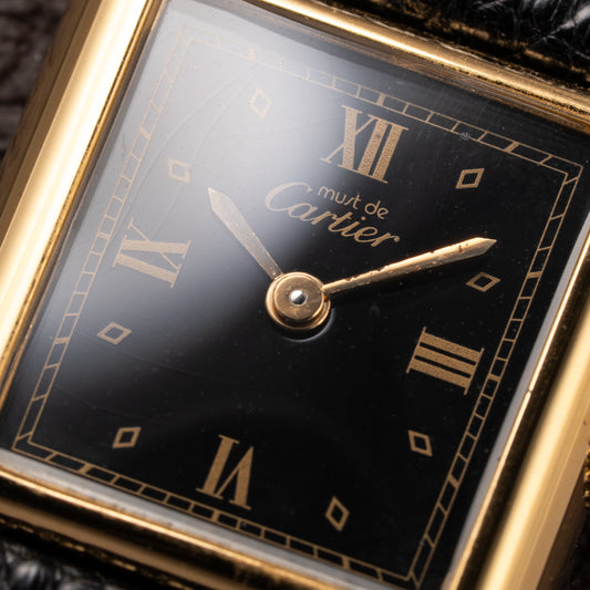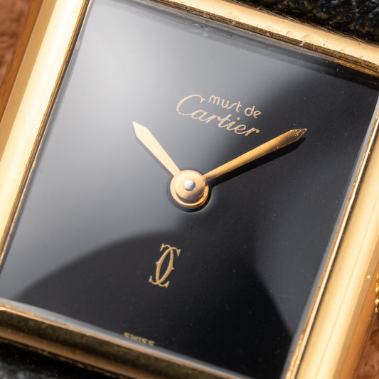 Cartier Tank Must de Black 'onyx' Dial Vermeil PM 1980s