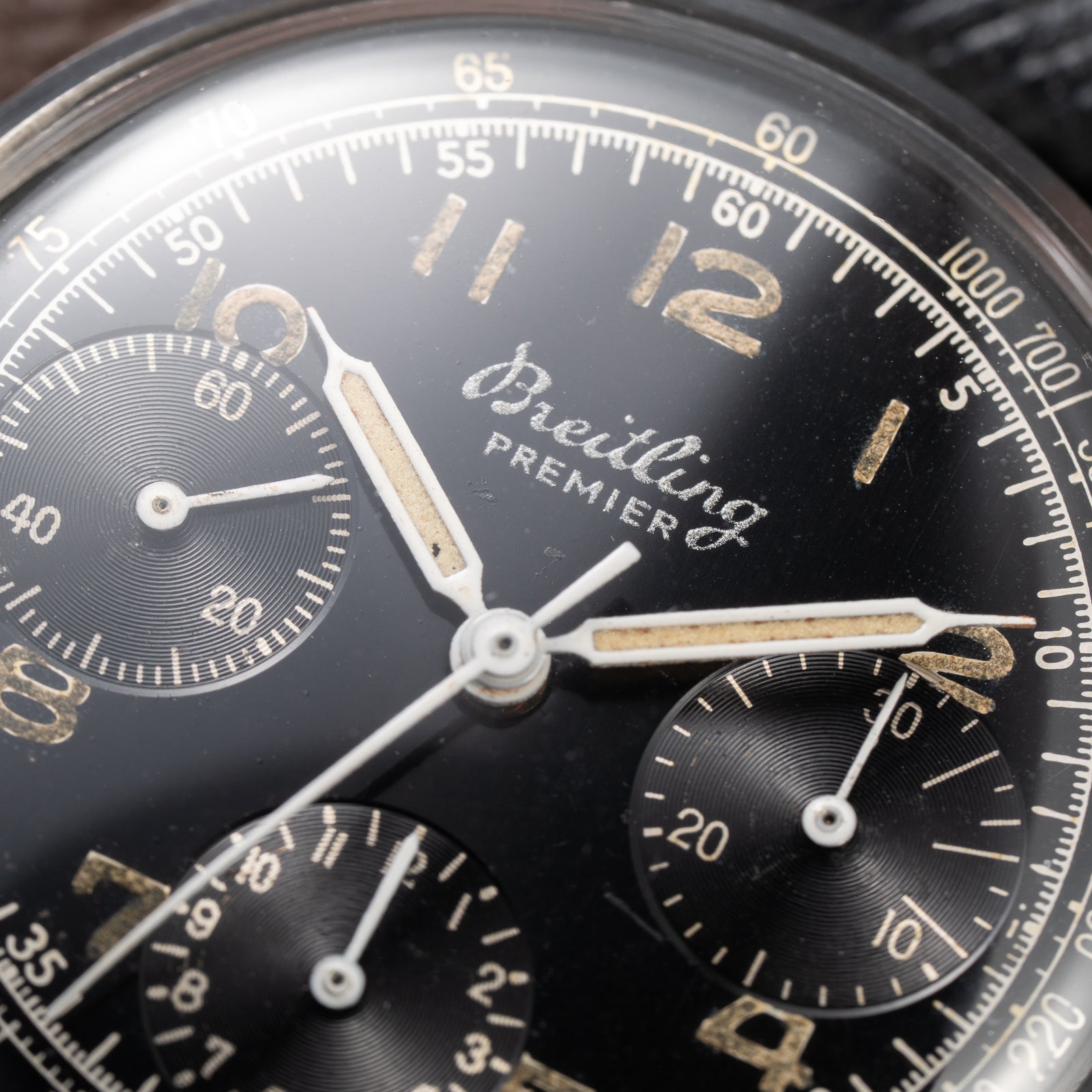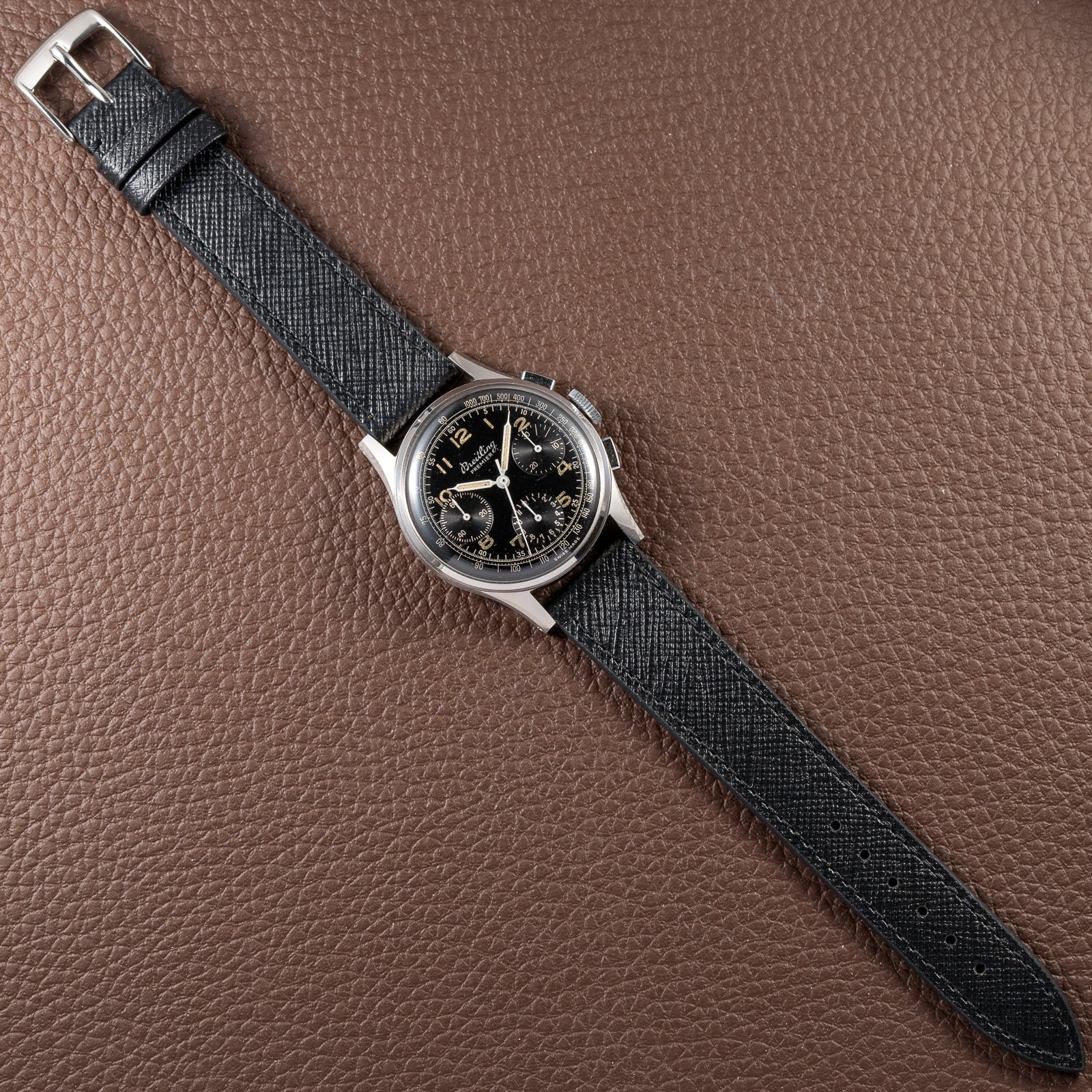 Breitling Premier Unpolished Black Gilt Dial Chronograph Venus 152 Ref 787 from 1940s