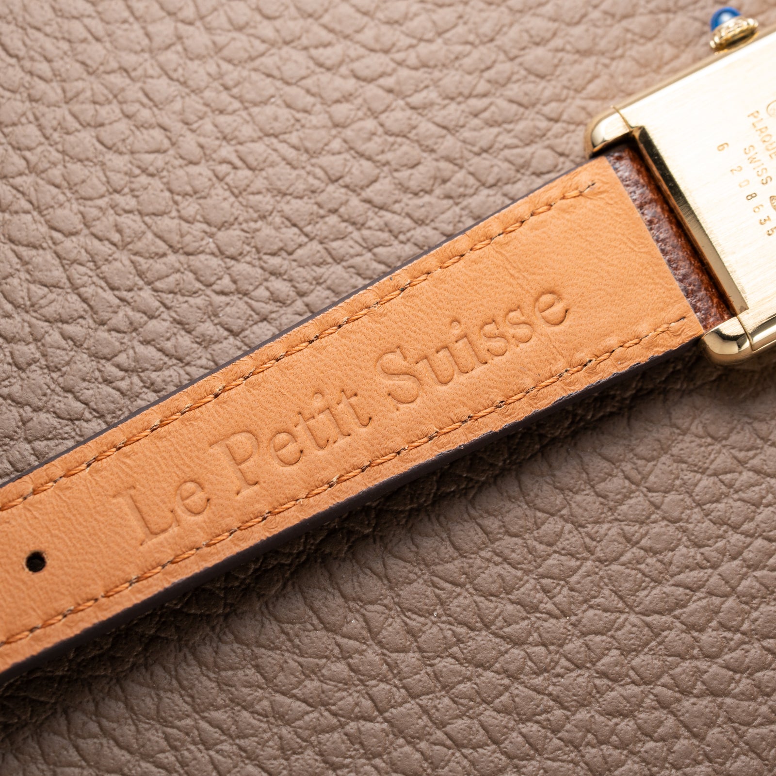 The lemon Roman dial showcases refined golden Roman numerals and matching hands, all in excellent original condition. Encased in a robust 23x30mm vermeil case, the watch is powered by the reliable Cartier Caliber 78-1, freshly serviced by our expert watchmaker. It comes with a 12-month guarantee for your peace of mind.