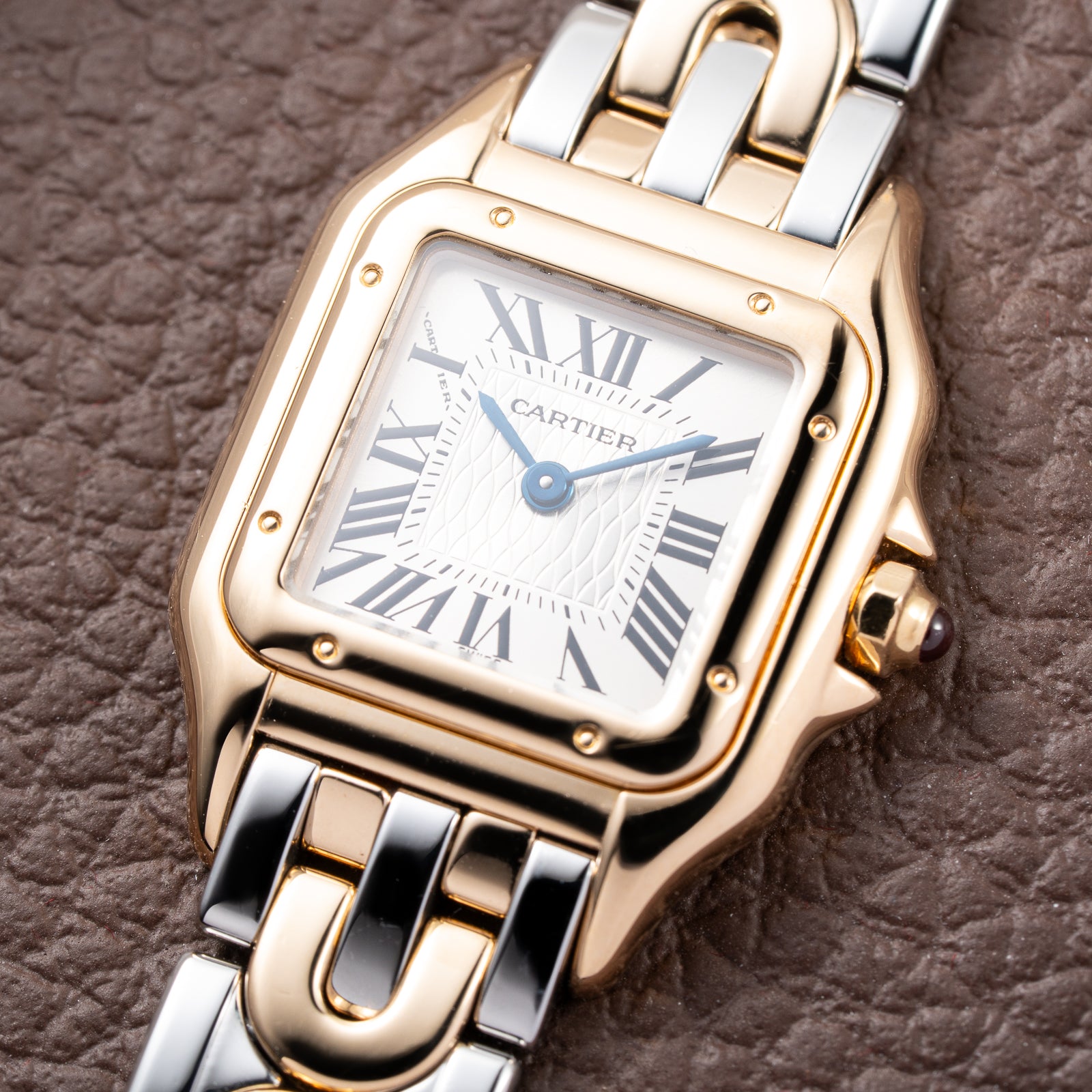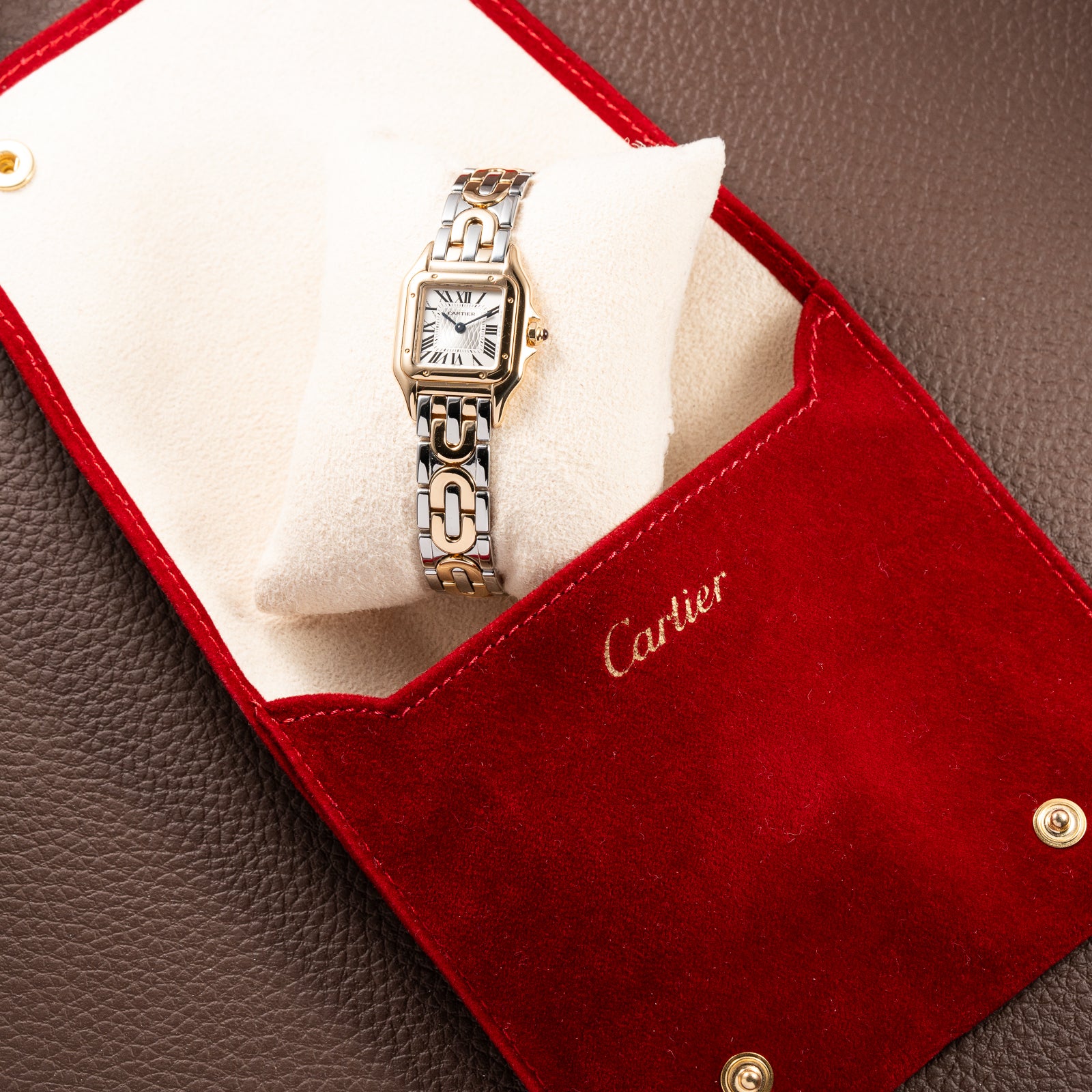 Inside the watch is the Cartier Quartz Calibre 157, a reliable and precise movement that ensures effortless daily wear while maintaining the slim elegance characteristic of the Panthère design.