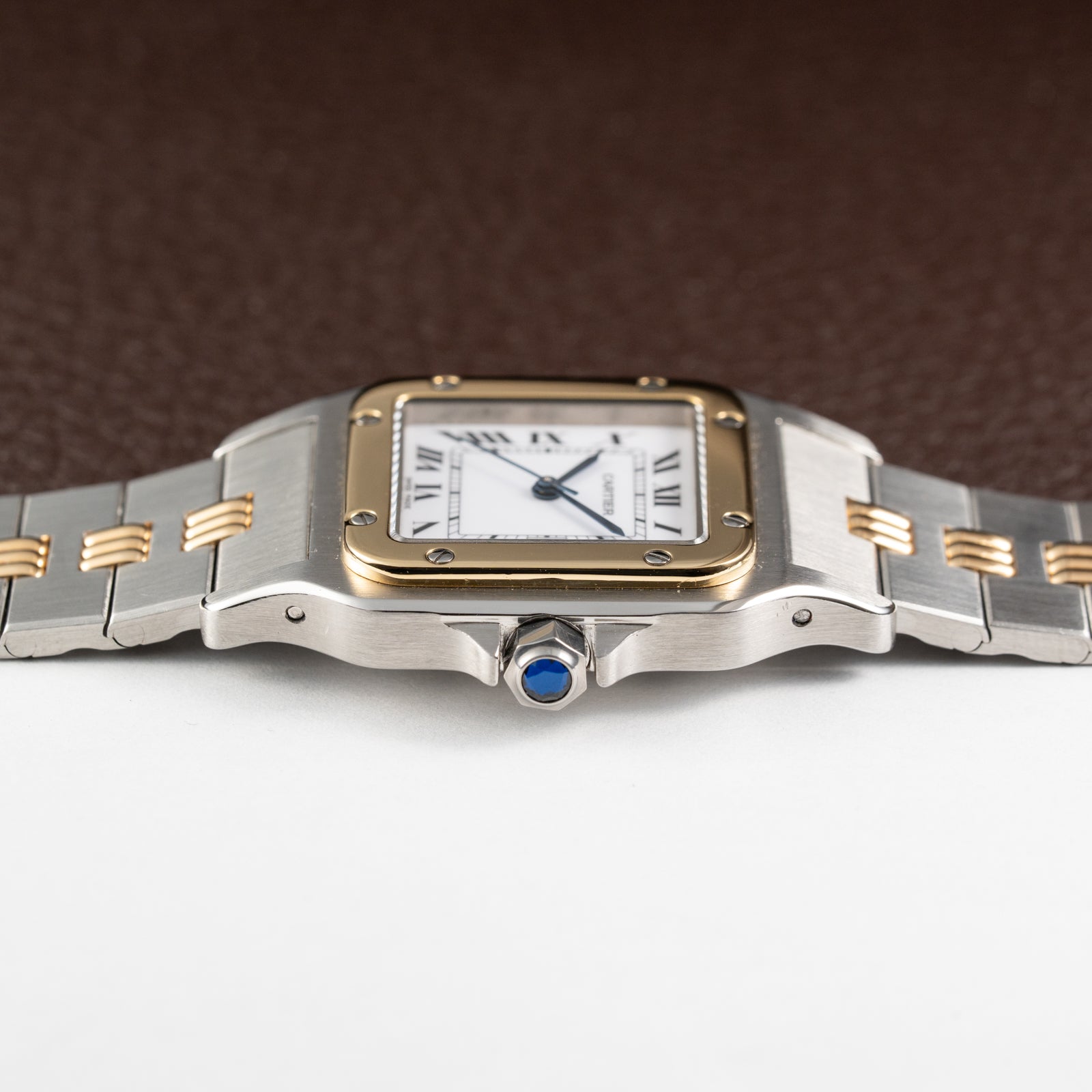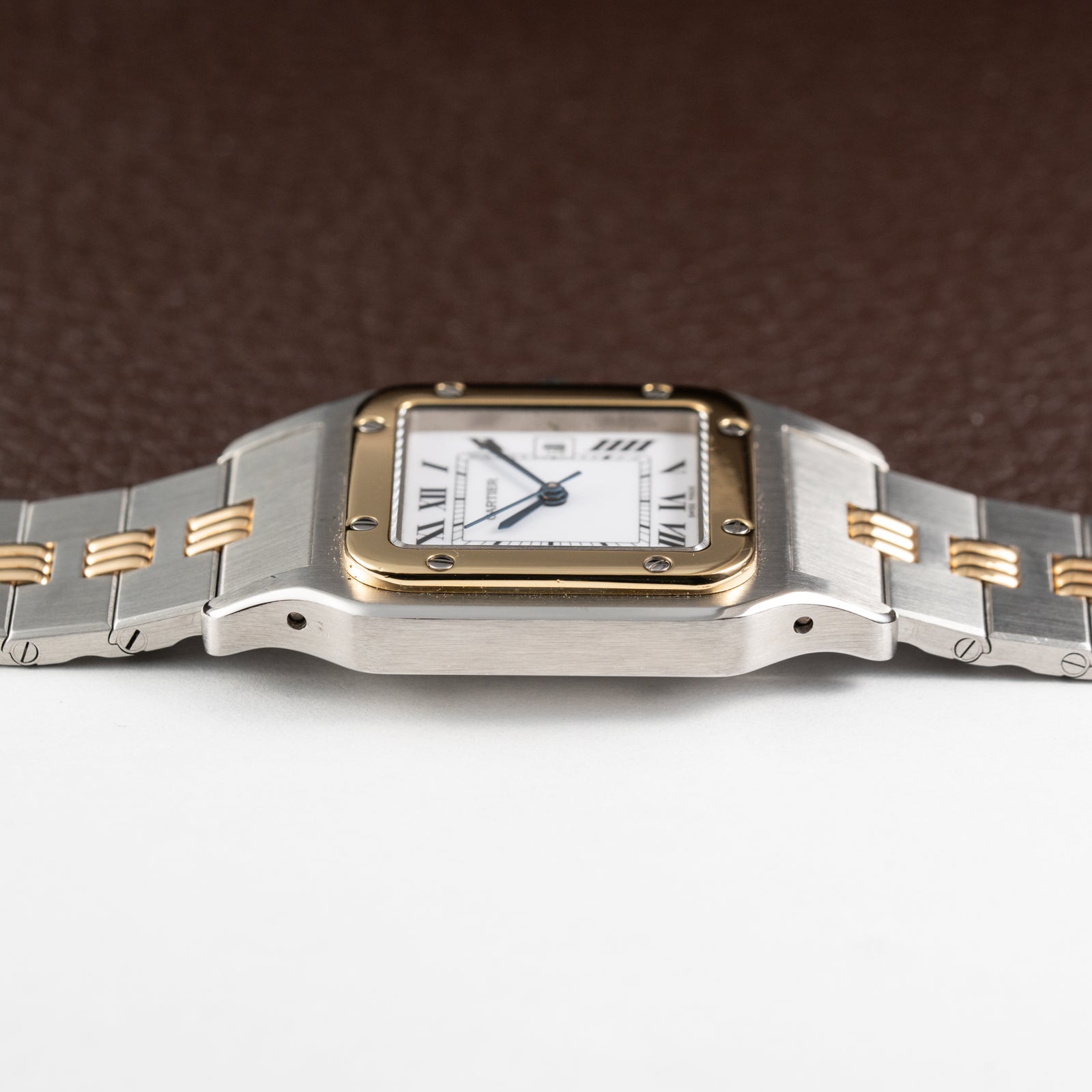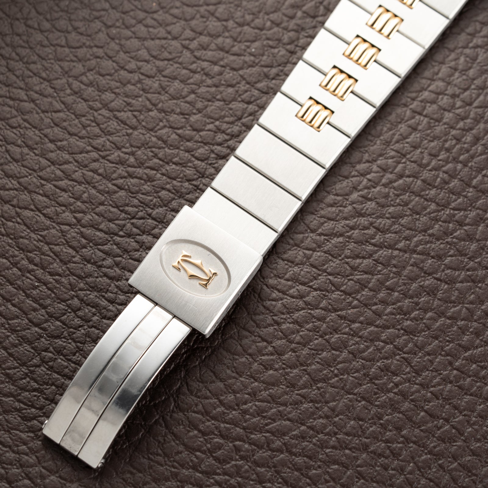The Cartier Santos Carrée is a true embodiment of timeless design, seamlessly blending sophistication with modern refinement. This reference 2961 showcases an 18K yellow gold bezel, perfectly complementing its sharp-edged stainless steel case. The highlight of this timepiece is its rare gold and steel Godron-style bracelet, an elegant and sought-after variation that enhances its exclusivity. The bracelet maintains its strength and integrity and has a maximum length of approximately 18cm.