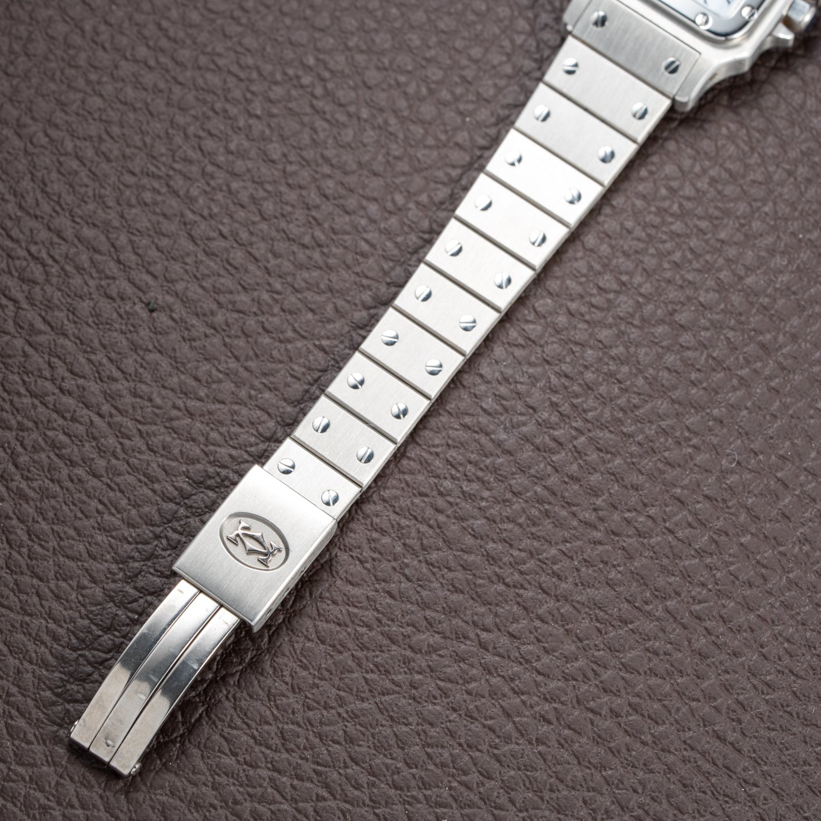 This “Lady” size edition from 1987, measuring 34 x 24mm, retains all the hallmarks of the classic Santos while offering a more refined and versatile wrist presence. The steel case remains in unpolished, untouched condition, with the red lacquer on the caseback still perfectly intact—an almost impossible feature to find after nearly 40 years.