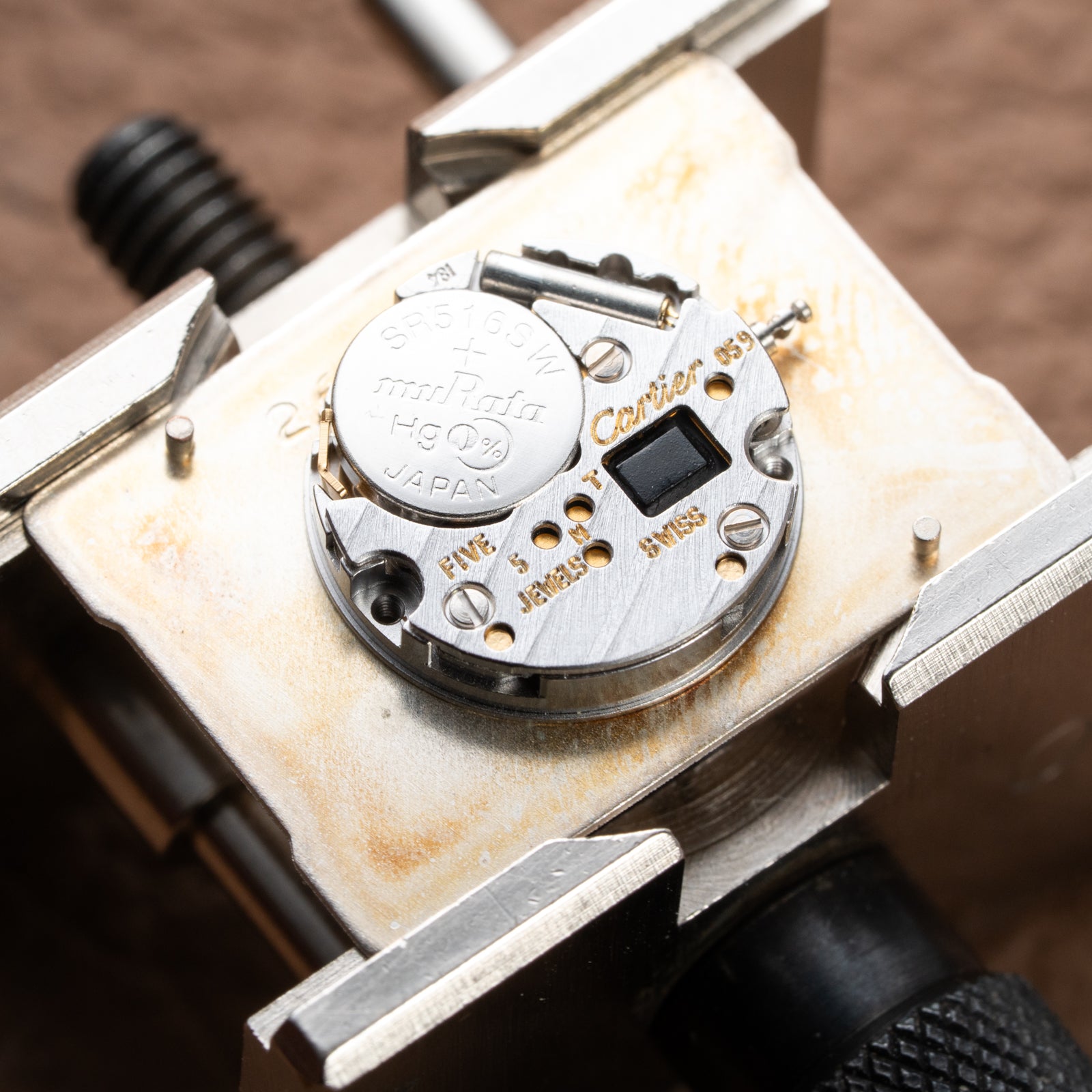 Inside beats the Cartier Calibre 059, a high-precision quartz movement tailored for ultra-thin, elegant watches. Known for its reliability and minimal upkeep, the battery was freshly replaced in July 2025, ensuring worry-free timekeeping for years to come.