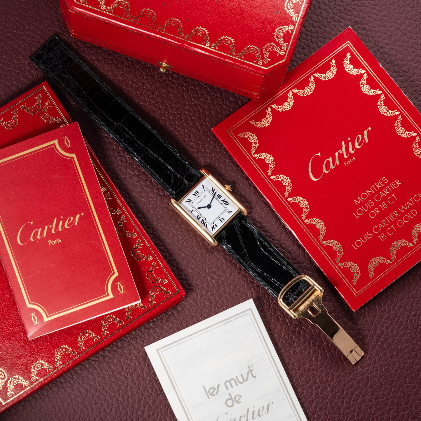 Original Bracelet, Box, and Papers: Finding a Tank Louis with all original accessories intact, especially Paris-specific papers and the Paris box, is exceedingly rare and highly desirable.