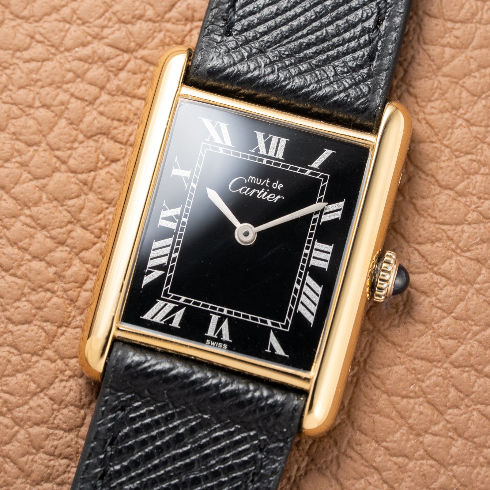 Cartier Tank Must de Black Roman Vermeil GM 1980s