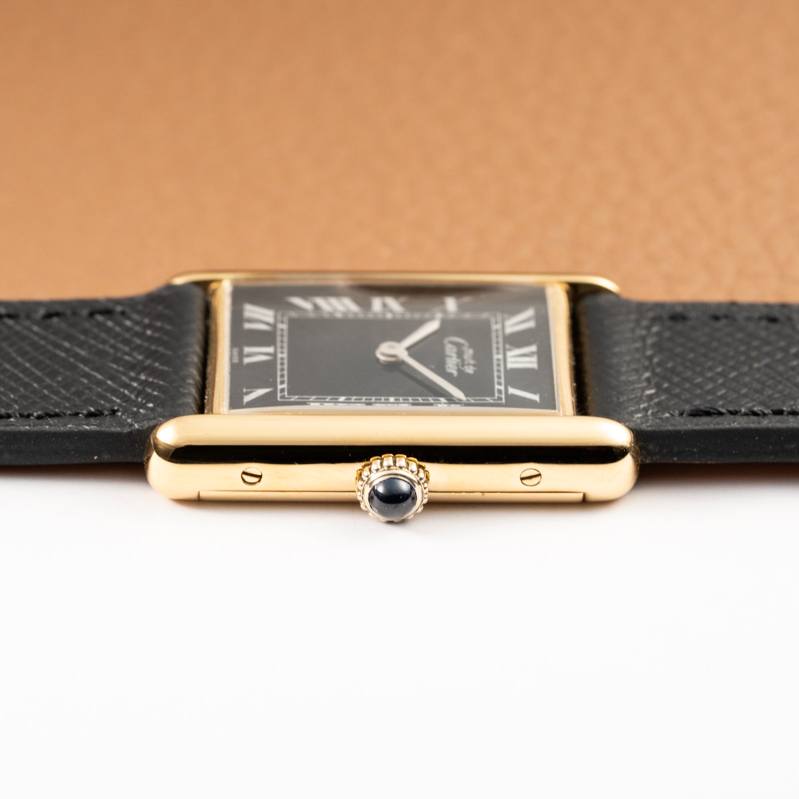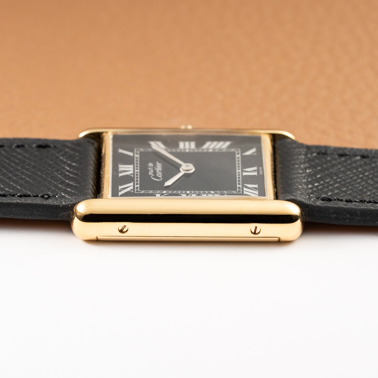 Cartier Must de Tank Vermeil Black Roman GM 1980s