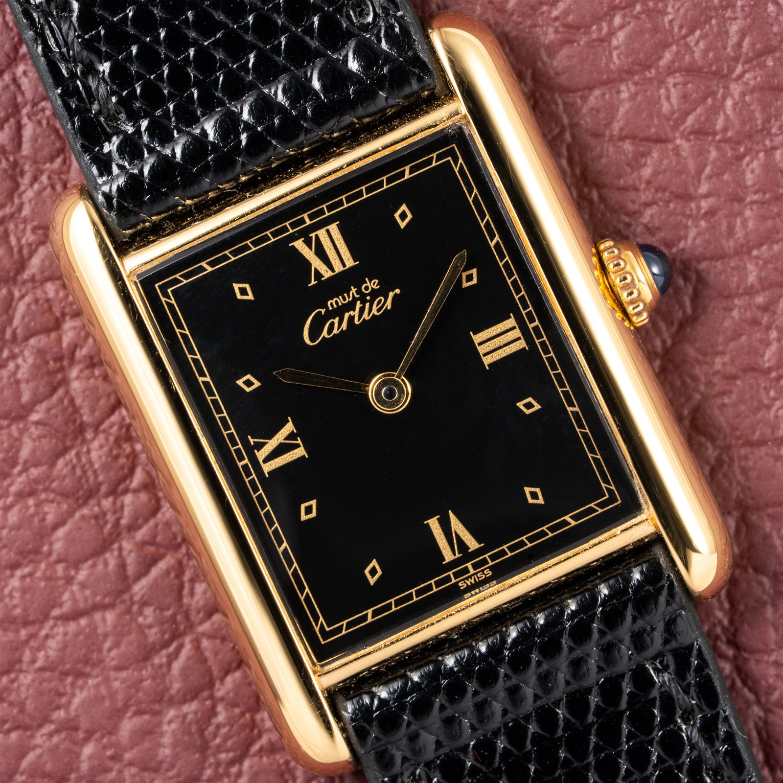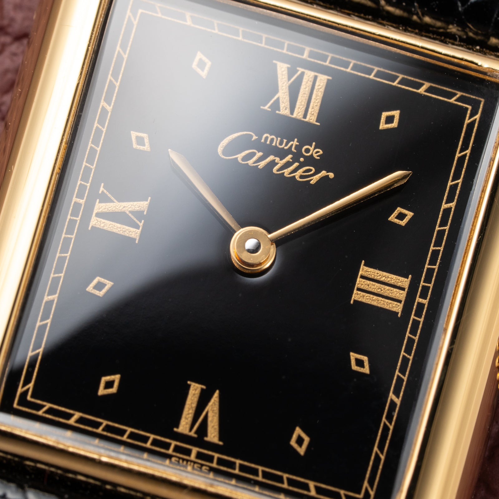 Cartier Tank Must de Vermeil Black Glossy Art Deco Dial 1990s Ref. 590005