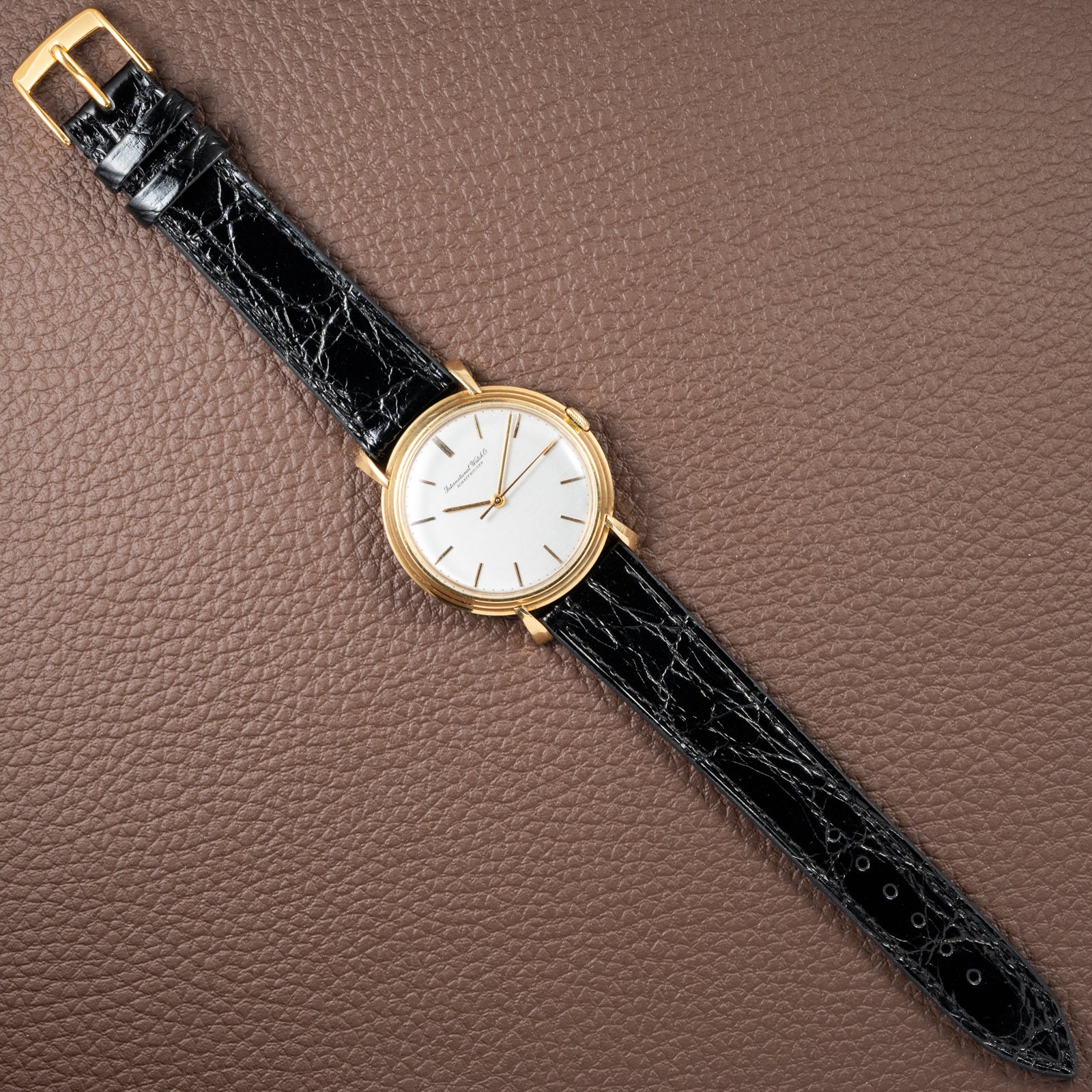 To wear it is to experience the best of Schaffhausen’s mid-century watchmaking—precision engineering wrapped in pure, golden minimalism. A rare opportunity for the discerning collector to own one of IWC’s true masterpieces of form and function.