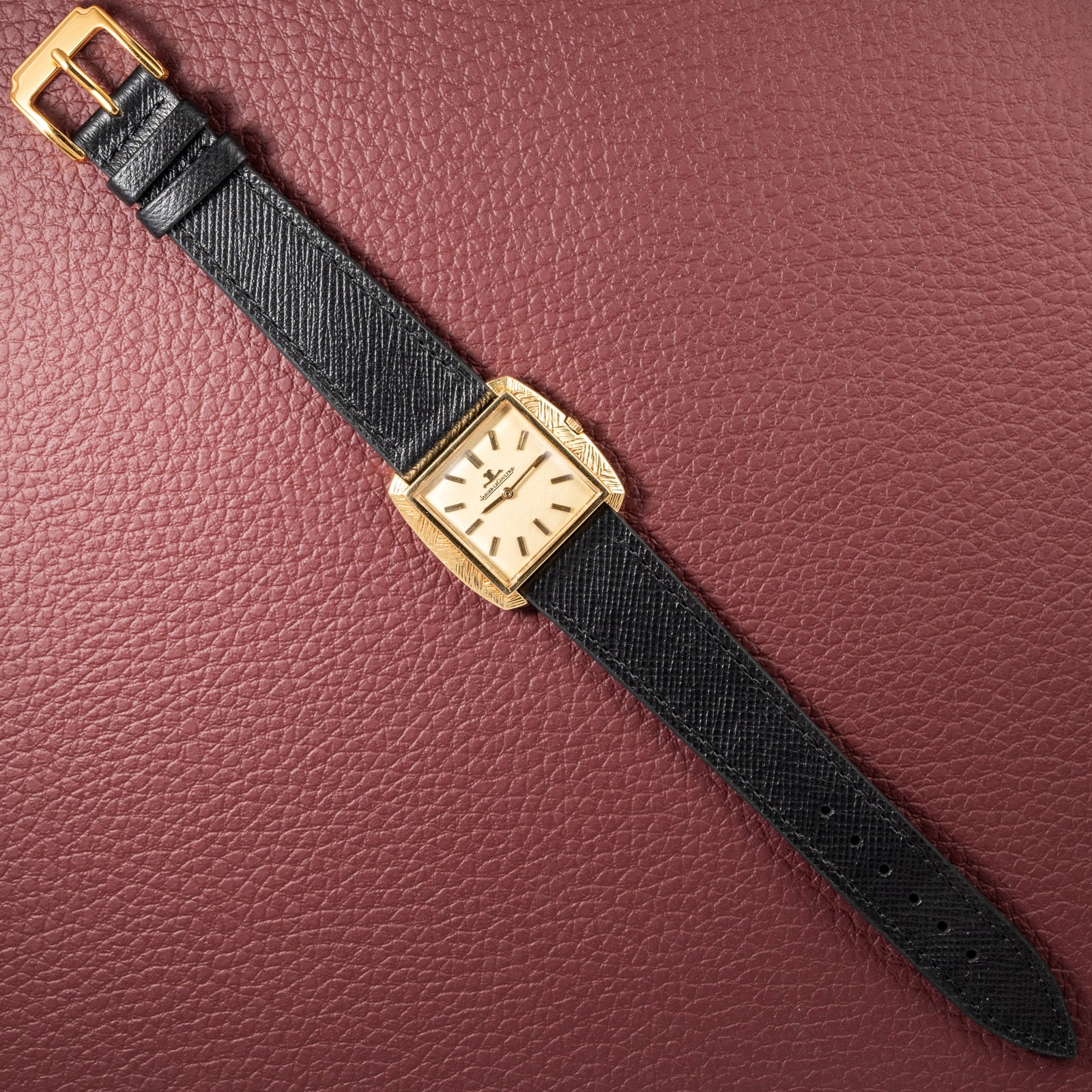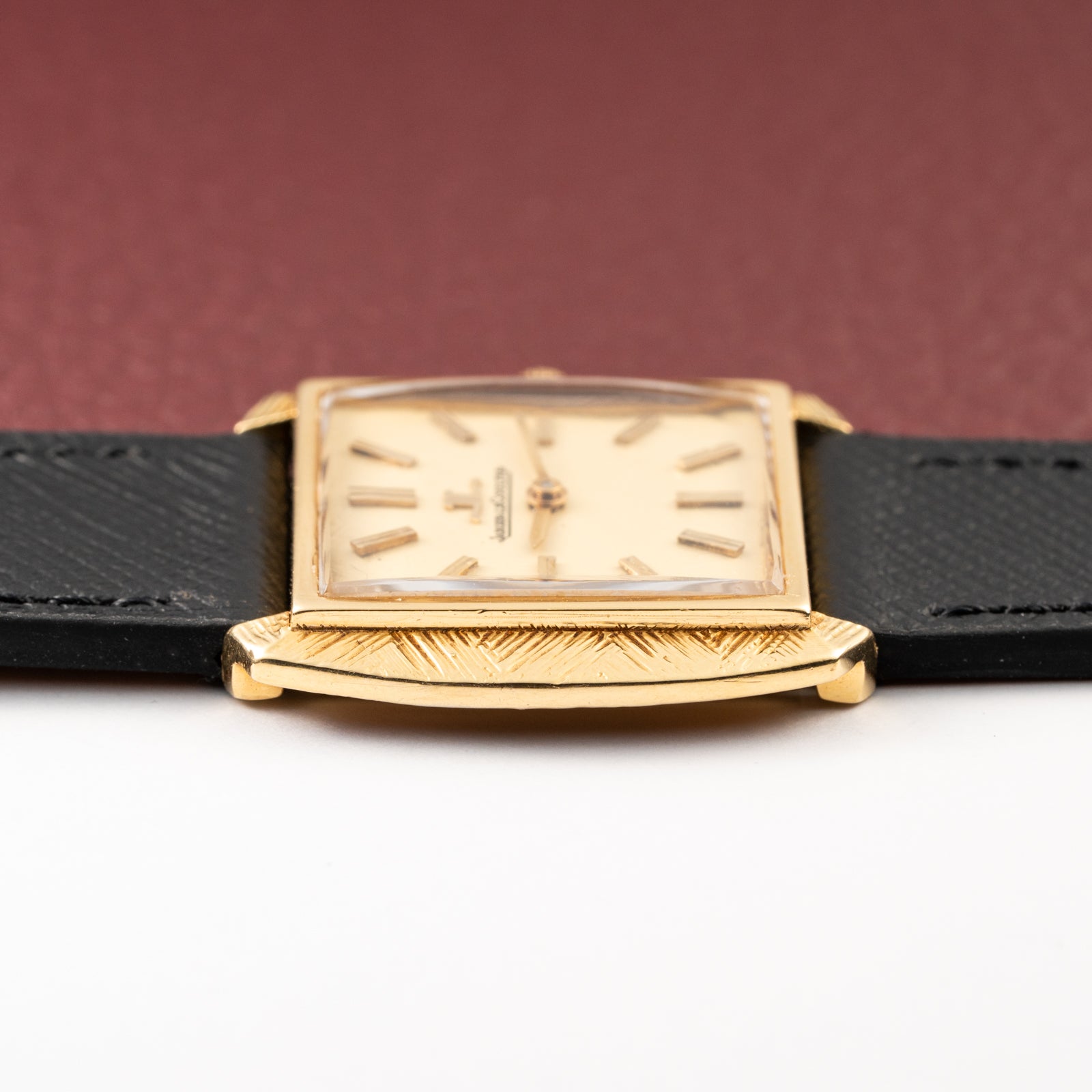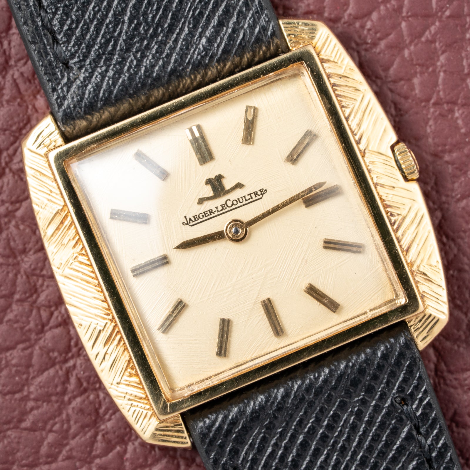 Dial: Original Jaeger-LeCoultre dial with textured, hand-engraved finish, matching the case decoration. In well-preserved, untouched condition.