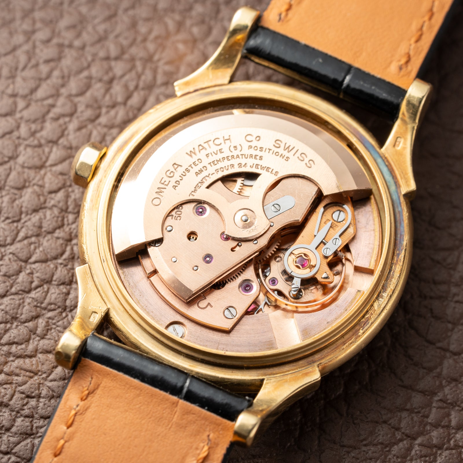 Powering this timepiece is the automatic Omega Calibre 505, a chronometer-grade movement that marked a leap forward in accuracy and reliability in the 1950s. This example has been fully serviced by a professional watchmakerand is running smoothly—ready for decades more of precise timekeeping.
