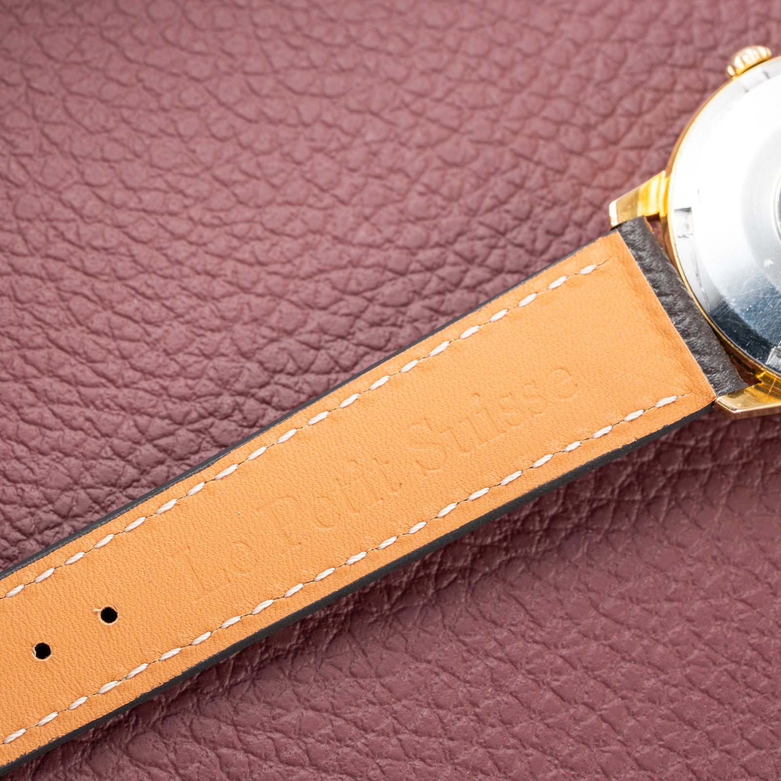 Strap: Fitted with a brand-new, hand-made Belgian leather strap, offering both comfort and refined style.