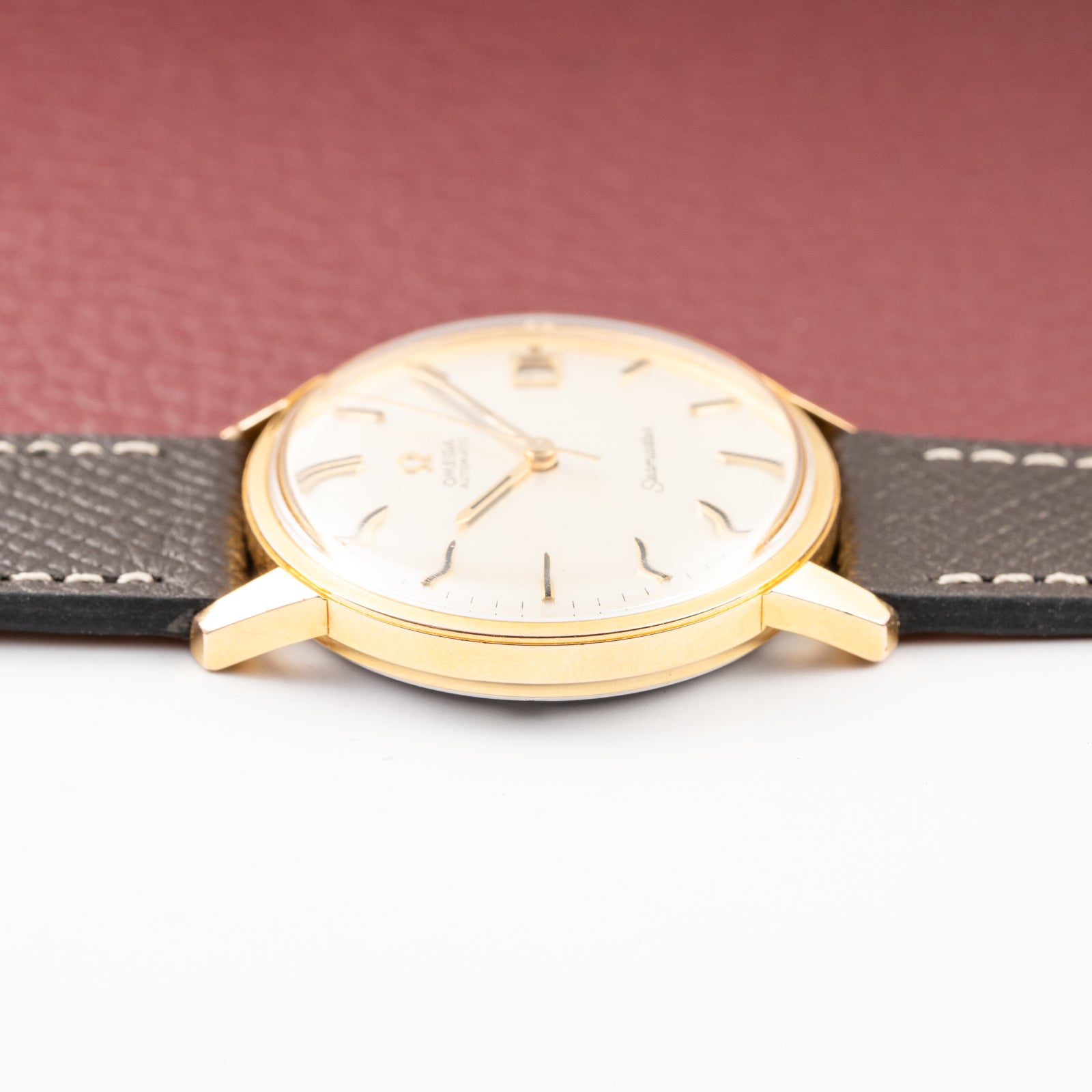 Case: Gold-plated 34mm case, well-proportioned and retaining its classic mid-century Seamaster character.