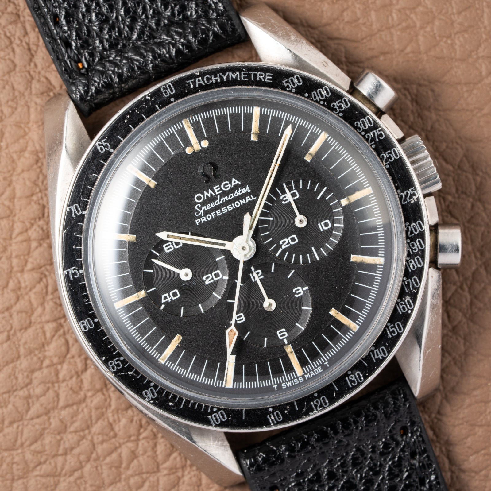 This is the exact reference worn on the wrists of astronauts such as Buzz Aldrin during Apollo 11. Its design and components are iconic—the stepped matte black dial, warm aged tritium lume, and the elusive DON bezel all reflect the golden age of Omega tool-watch craftsmanship.