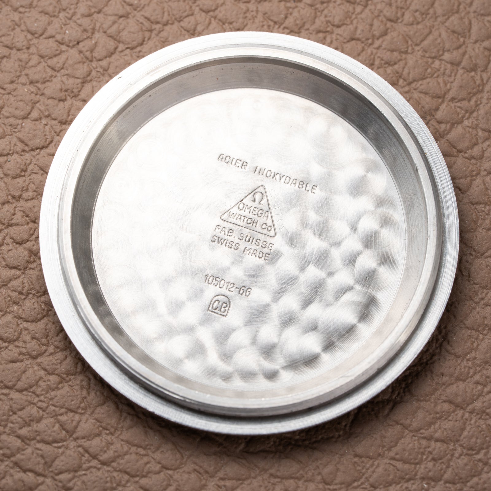Case: 42mm stainless steel asymmetric “lyre” lug case, correct for this reference. This example is particularly rare as it was manufactured by La Centrale Boîtes (CB), one of Omega’s contracted case makers alongside Huguenin Frères. Cases produced by CB are estimated to make up two-thirds of all 105.012-66 production, and are identifiable by their flatter lug profile and more subtle transition step on the lug bevel—making them highly sought-after among collectors.