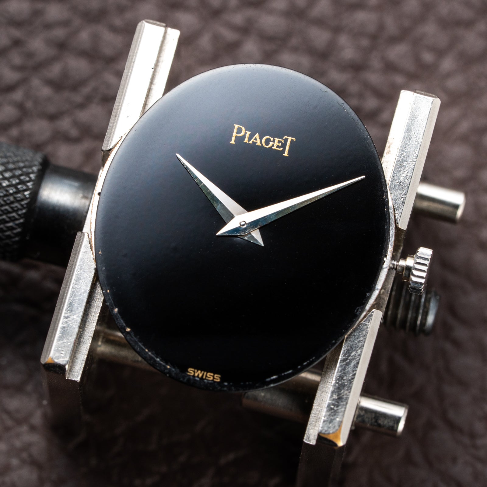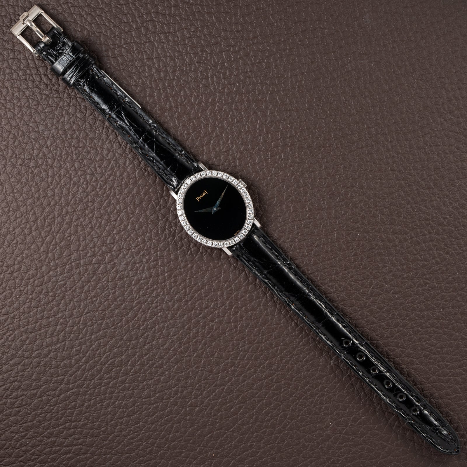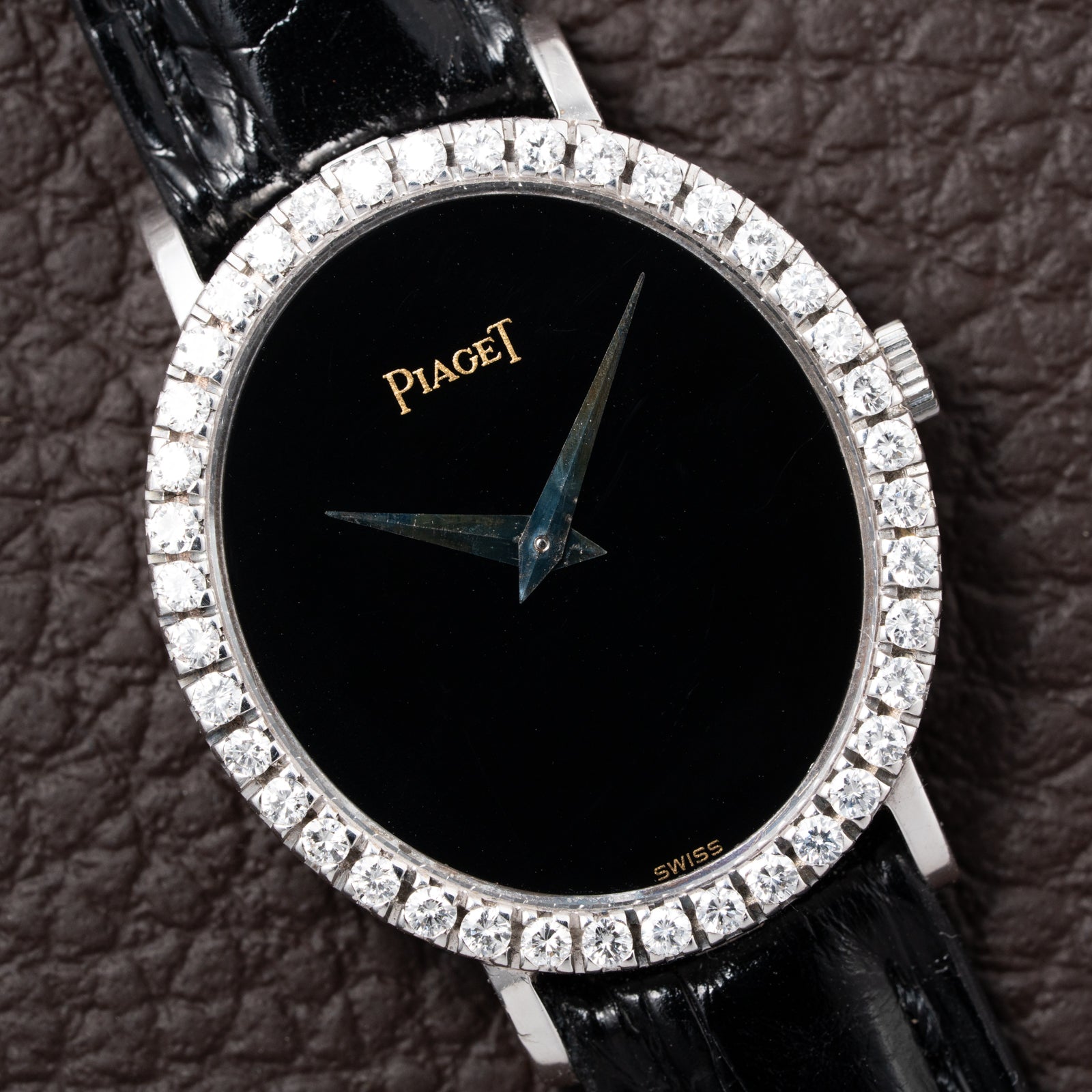 Piaget Oval Ellipse Onyx Black Dial Factory Diamond Bezel 18K White Gold Ref. 9826 from 1970s
