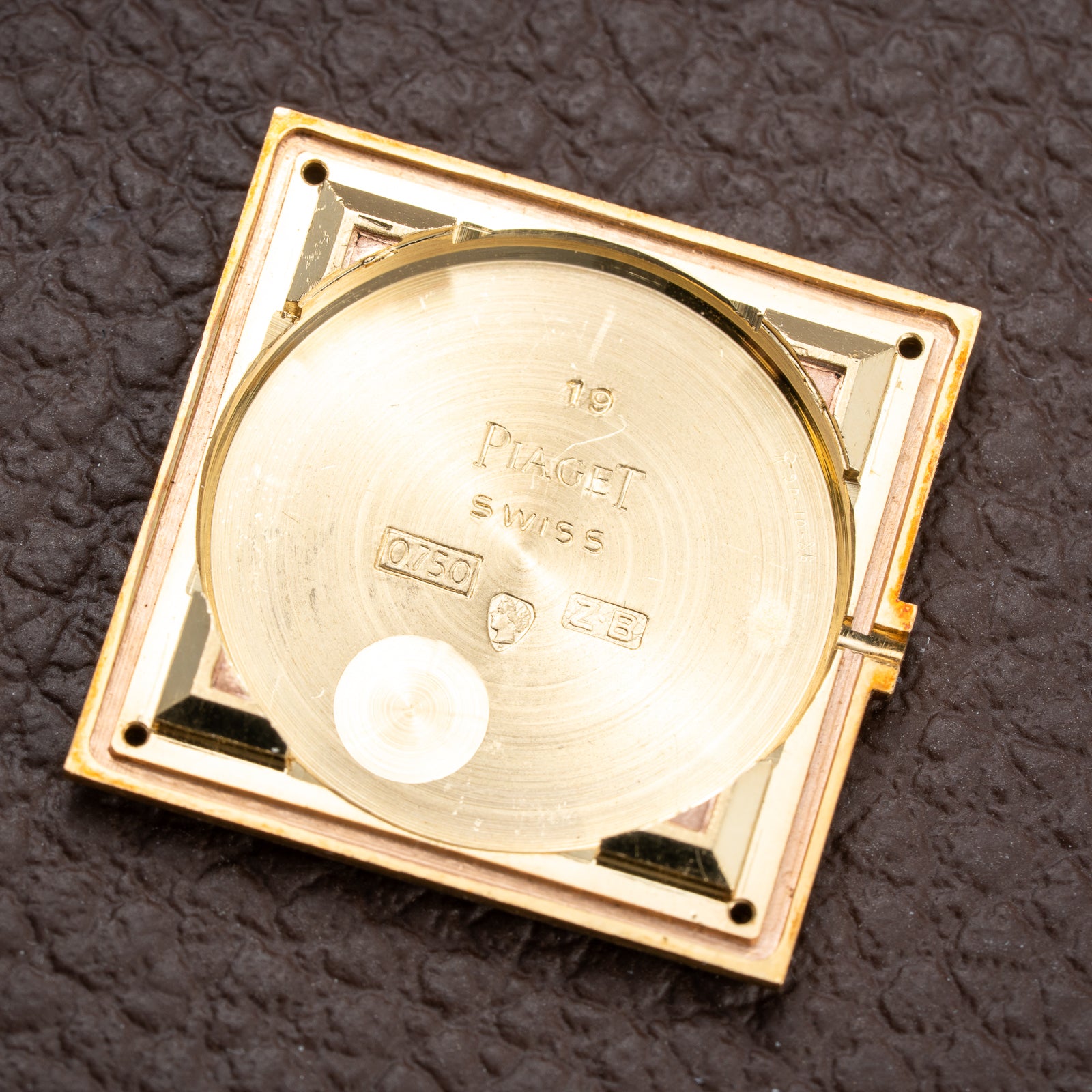 Elegant and distinctive Piaget square dress watch, crafted in solid 18k yellow gold and powered by the legendary ultra-thin Calibre 9P—an icon of 1970s design and refinement.