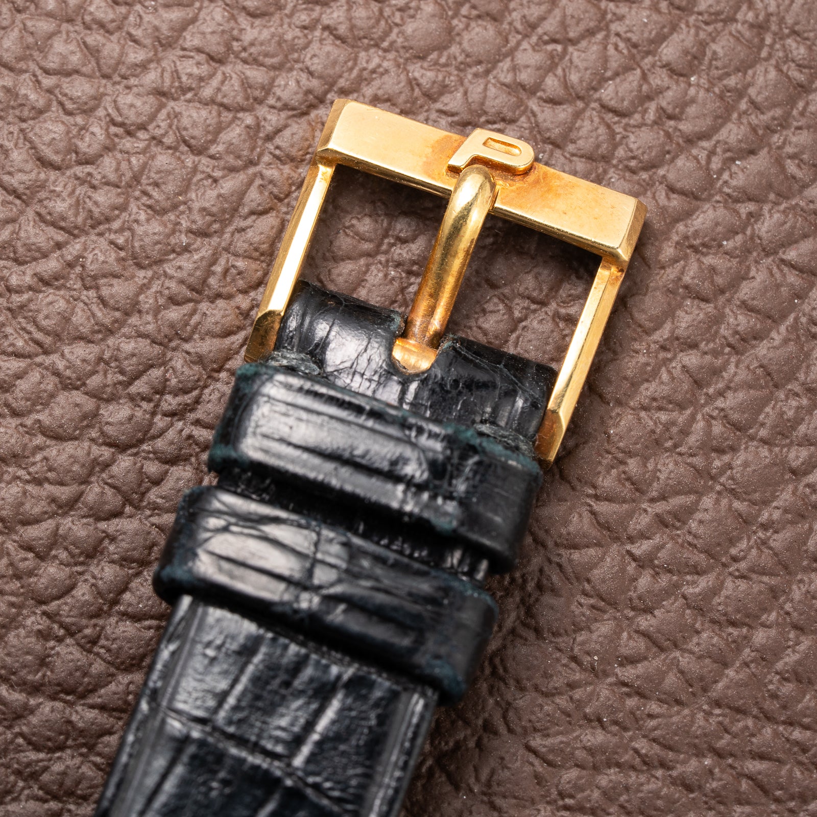 Fitted with a sapphire crystal and presented on its original black alligator Piaget strap with matching 18k gold Piaget buckle.