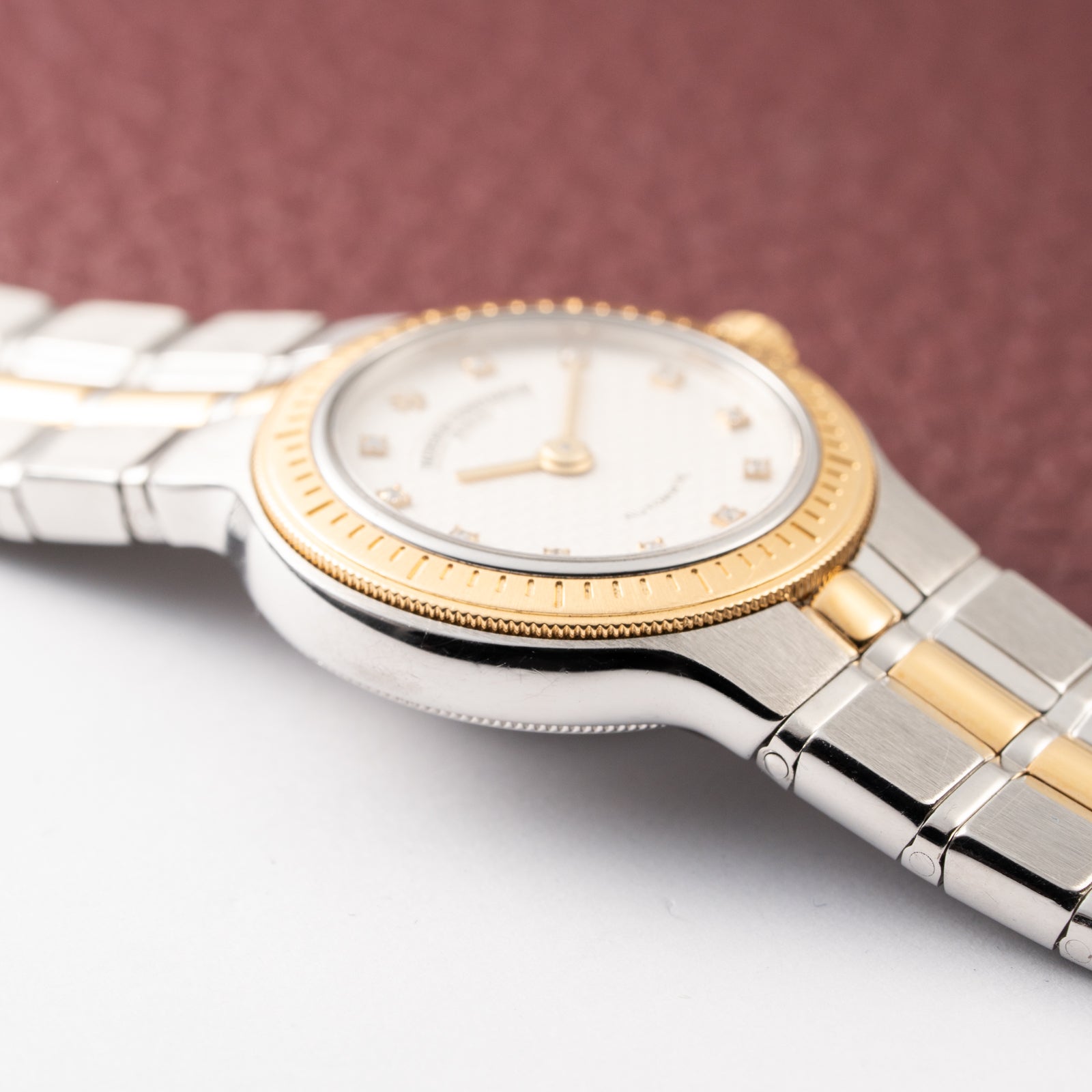 The 24mm case, crafted in a mix of stainless steel and yellow gold, exemplifies 1990s refinement. Measuring modestly, it wears comfortably and with quiet sophistication, ideal for collectors who appreciate proportionate vintage design. The sapphire crystal ensures modern durability while maintaining transparency and brilliance.